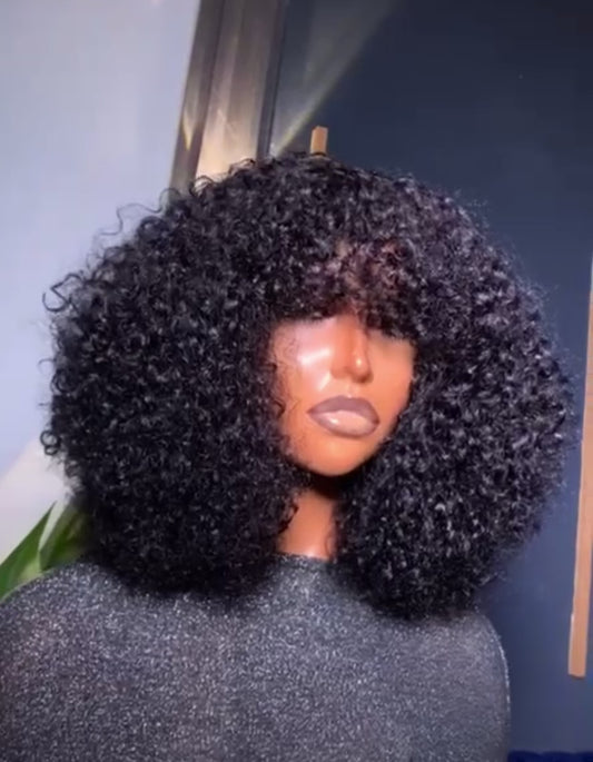 12-Inch Curly Fringe Wig – 300% Density | 100% Human Hair