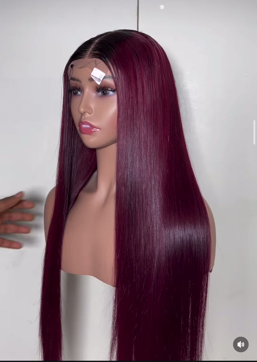 Make a bold statement with our 26-inch Luxury Burgundy Bone Straight Wig, featuring a 4x6 glueless lace closure for a secure, comfortable fit—no glue or adhesive needed. This vibrant yet classy unit is made from 100% virgin human hair, offering a silky-smooth texture, rich burgundy tone, and effortless styling.