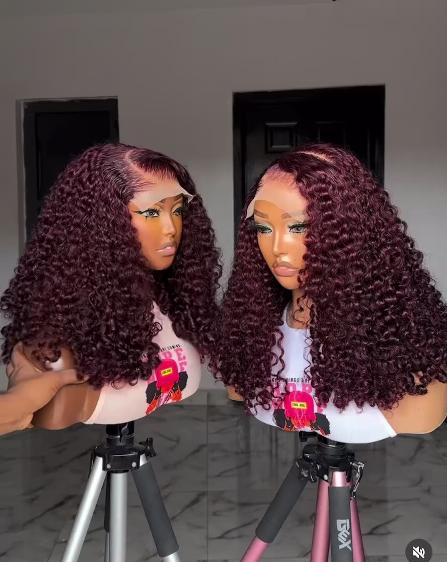 Crafted from 100% human hair, this wig offers a rich burgundy hue that pops in natural light, while the water curl texture adds definition and bounce. Perfect for everyday wear or special occasions, it’s beginner-friendly and fully customizable.