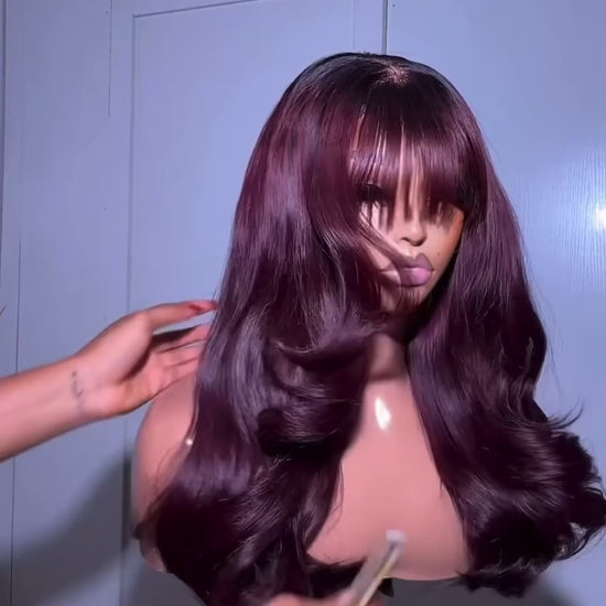 Dark Burgundy Fringe Luxury Wig | 22 Inches | 380% Density | 100% Human Hair
